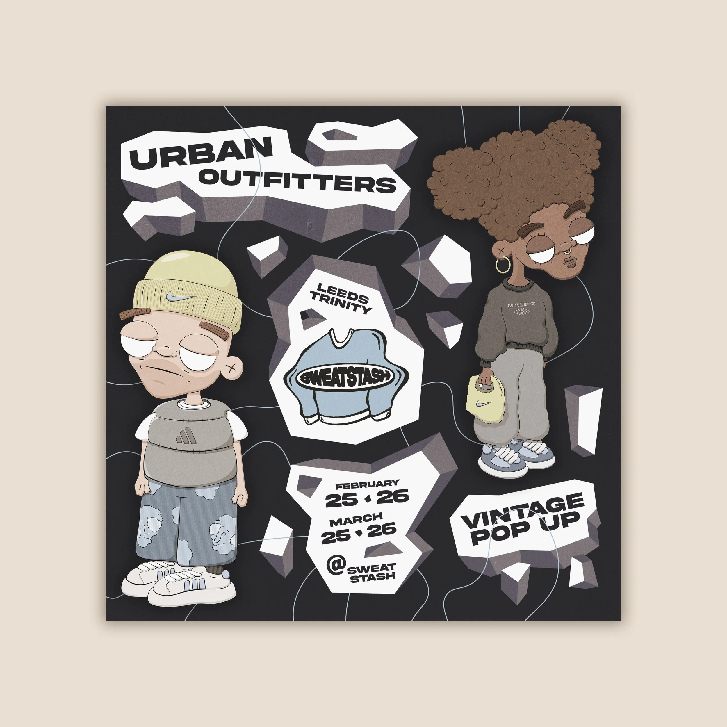 This was a commissioned piece I created for an independent vintage company that was working within urban outfitters.I combined my signature characters and graphic design background to create a poster that showed off their vintage aesthetic and matched what my client wanted.